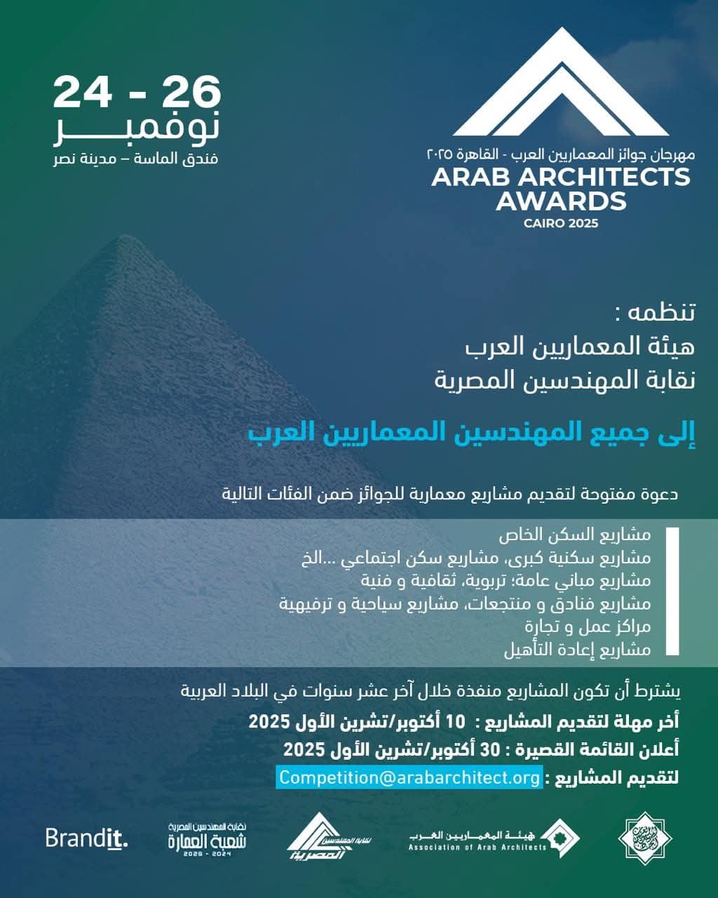 للمرة الأولى.. مصر تستضيف النسخة الثالثة من مهرجان “جوائز المعماريين العرب” في نوفمبر